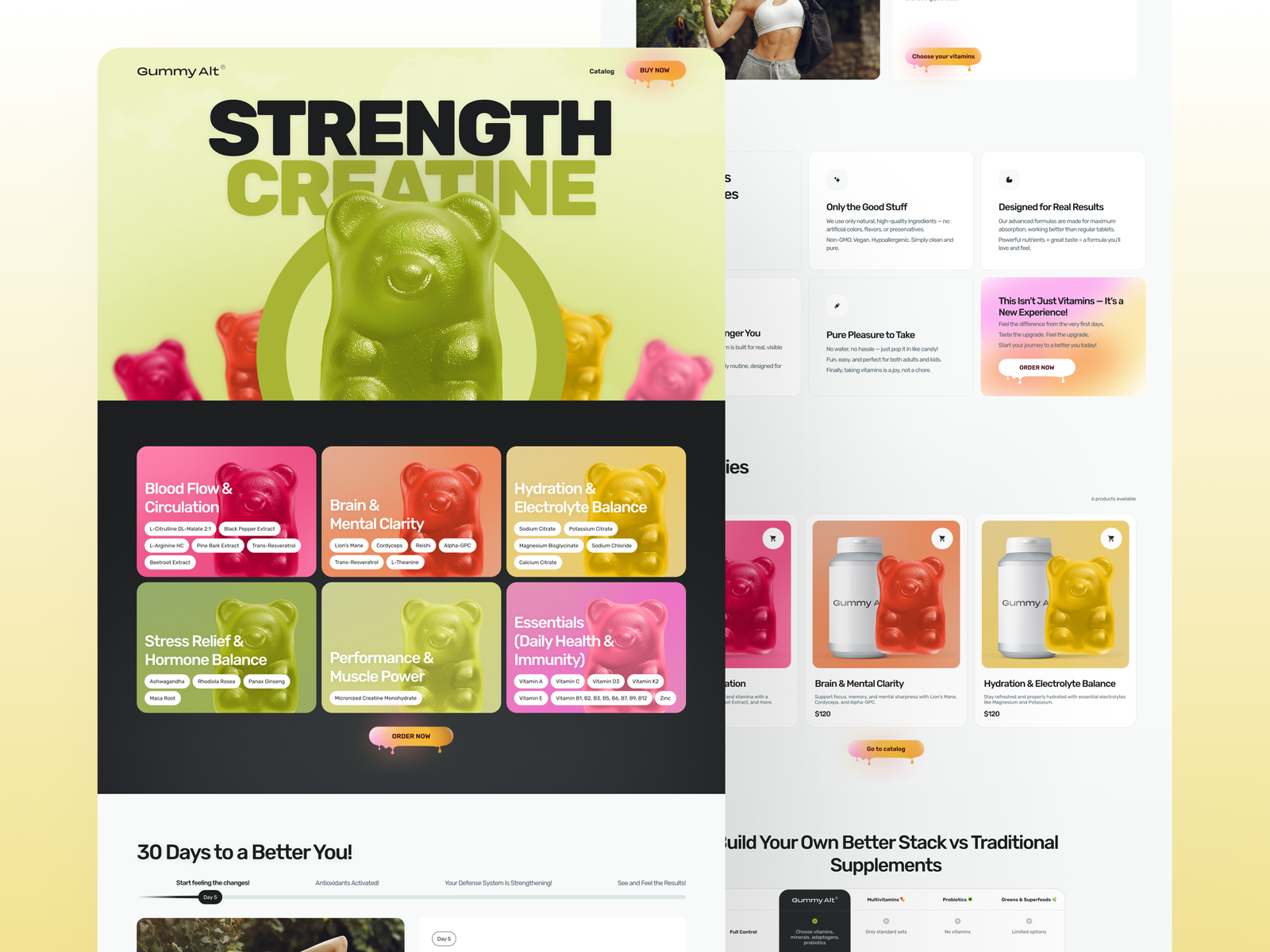 We began with in-depth market and competitor research within the wellness and nutraceutical space, focusing on how modern supplement brands communicate with younger, lifestyle-driven audiences. We analyzed visual trends, packaging formats, tone of voice, and conversion structures in DTC health brands to identify gaps between clinical credibility and emotional engagement.