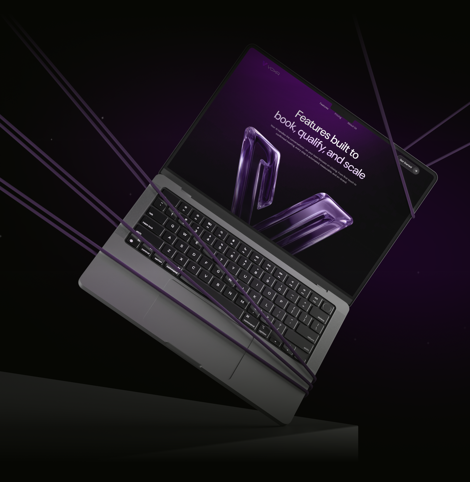 Create a modern marketing website from scratch for an AI product with outbound calling that clearly explains its value and key features (real-time qualification, lead transfer/booking), convenient navigation, and a dark premium UI (purple/black) with large headlines and smooth animations — to increase trust and attract new users.