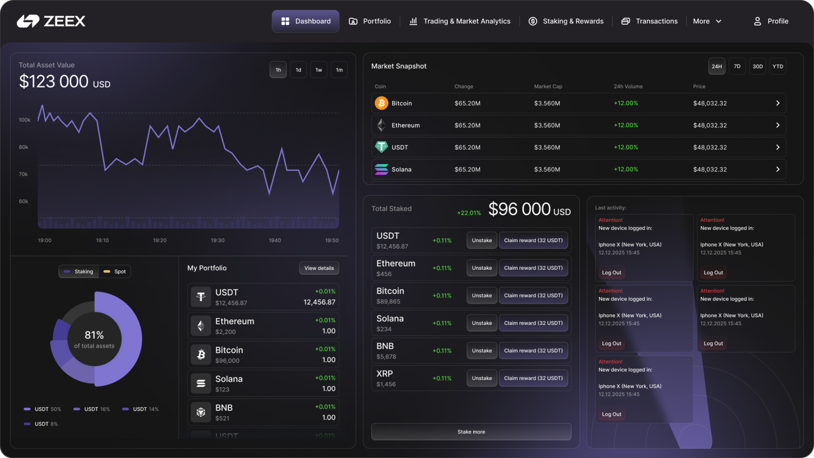 The resulting design positions Zeex as a cutting-edge, data-driven leader in cryptocurrency trading and asset management. By seamlessly merging innovative aesthetics with functional efficiency, the platform enhances user engagement, builds trust, and elevates the overall trading experience. With a focus on intuitive navigation and visually engaging analytics, the redesigned dashboard ensures effortless access to market insights, portfolio management, and transaction history. This transformation not only strengthens Zeex’s digital presence but also aligns with its mission to empower traders with real-time data, transparency, and a sleek, modern interface.
